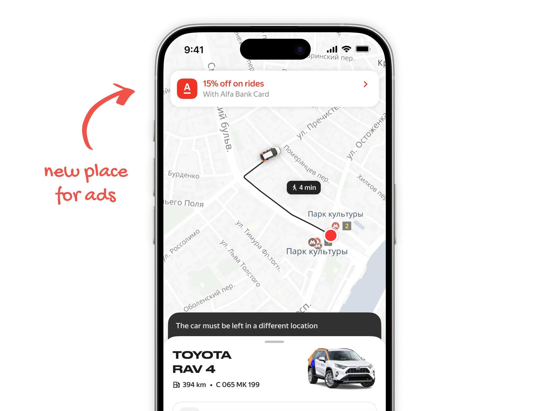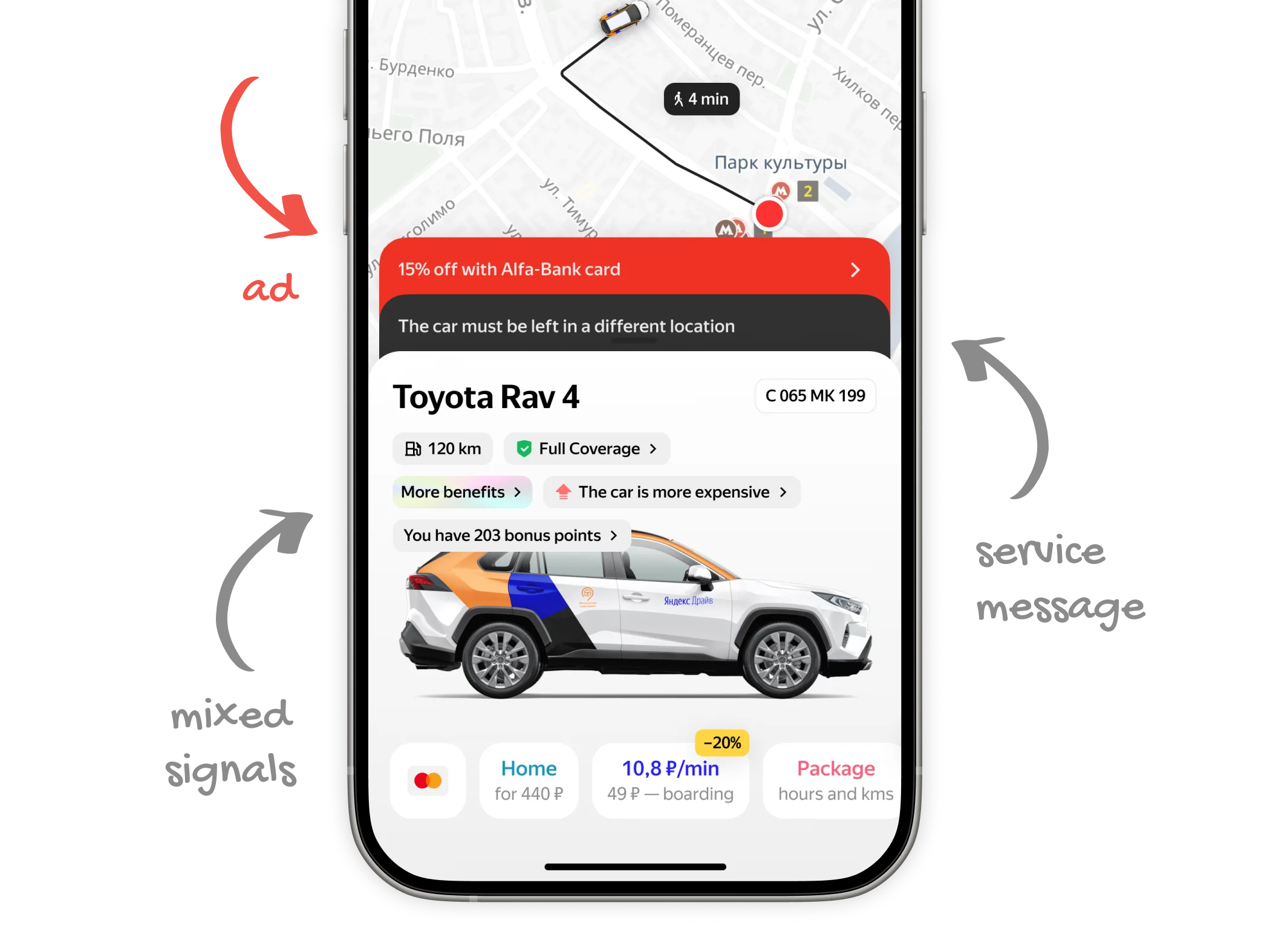 This opened the door for two things. First, ecosystem partnerships — Yandex has a car marketplace, so we embedded a link to the car's listing on Auto.ru with pricing and loan offers.