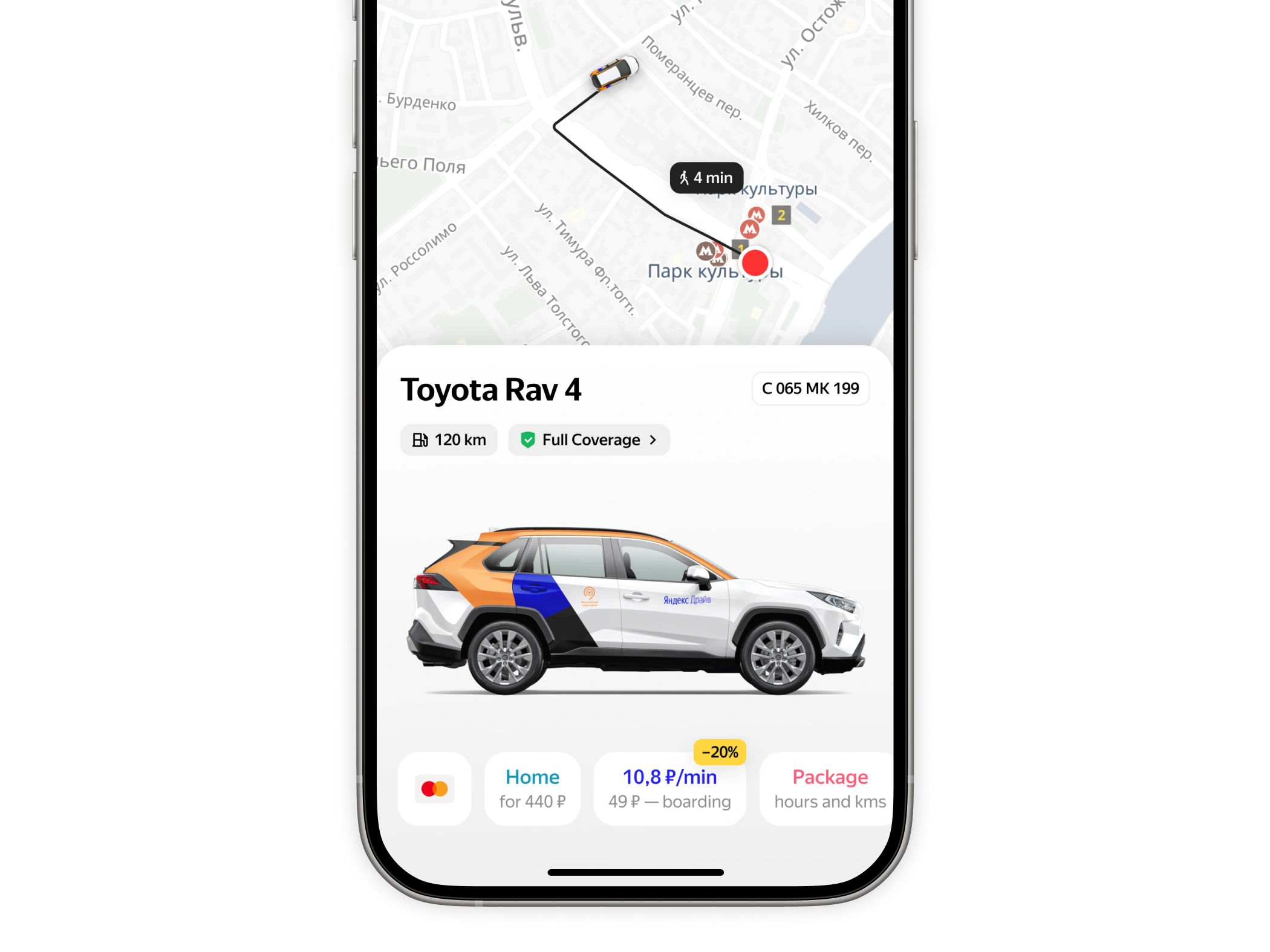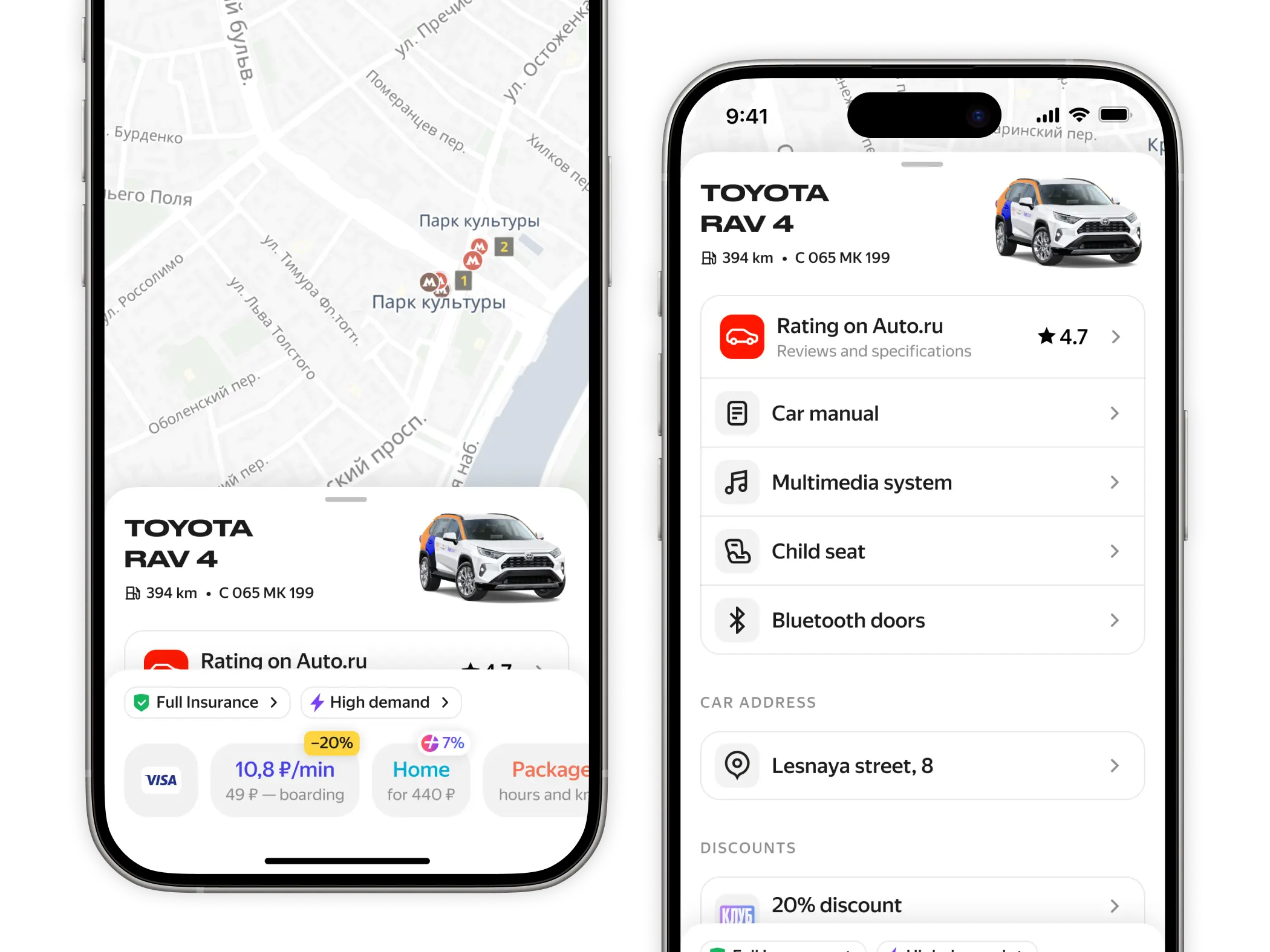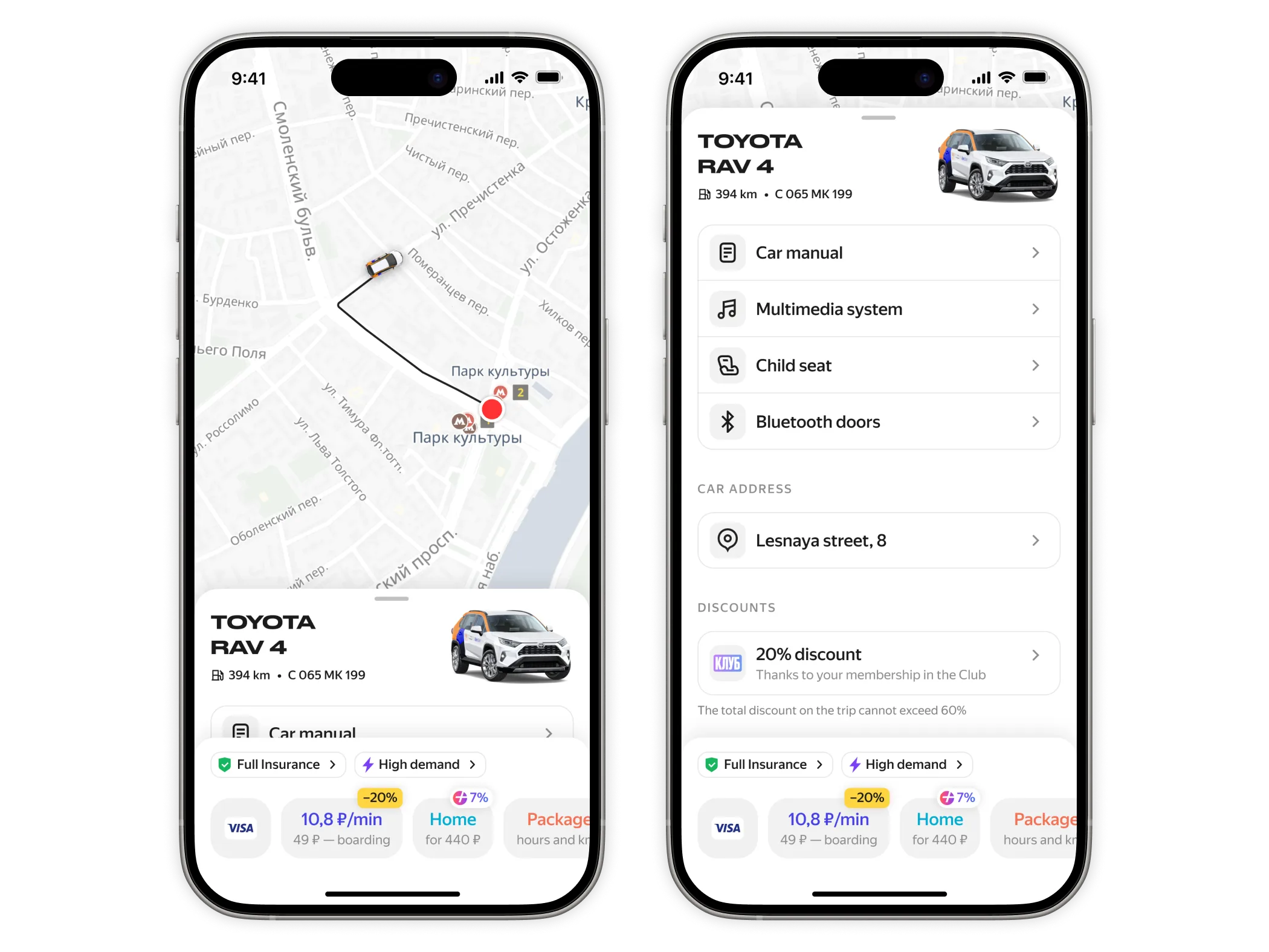 Yandex Drive is one of the largest carsharing services in Russia and Europe. The vehicle card is where users check car details, choose a rate, and book. Everything goes through this screen.