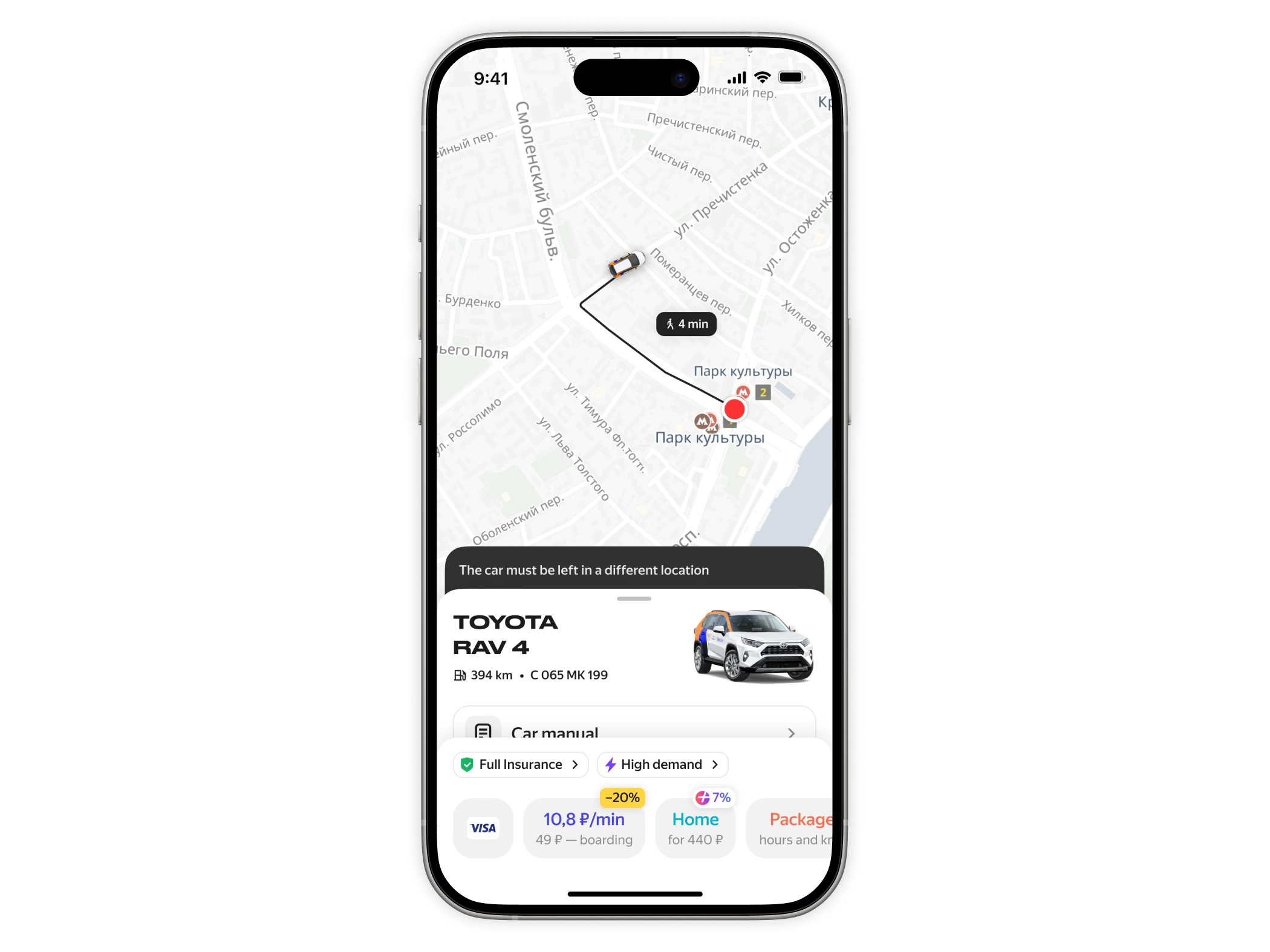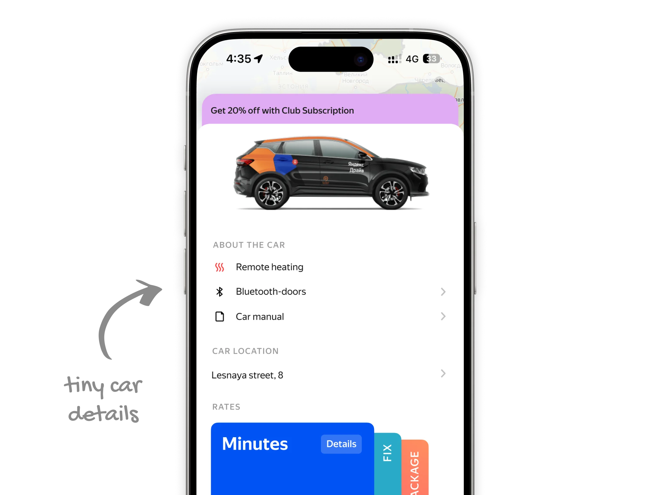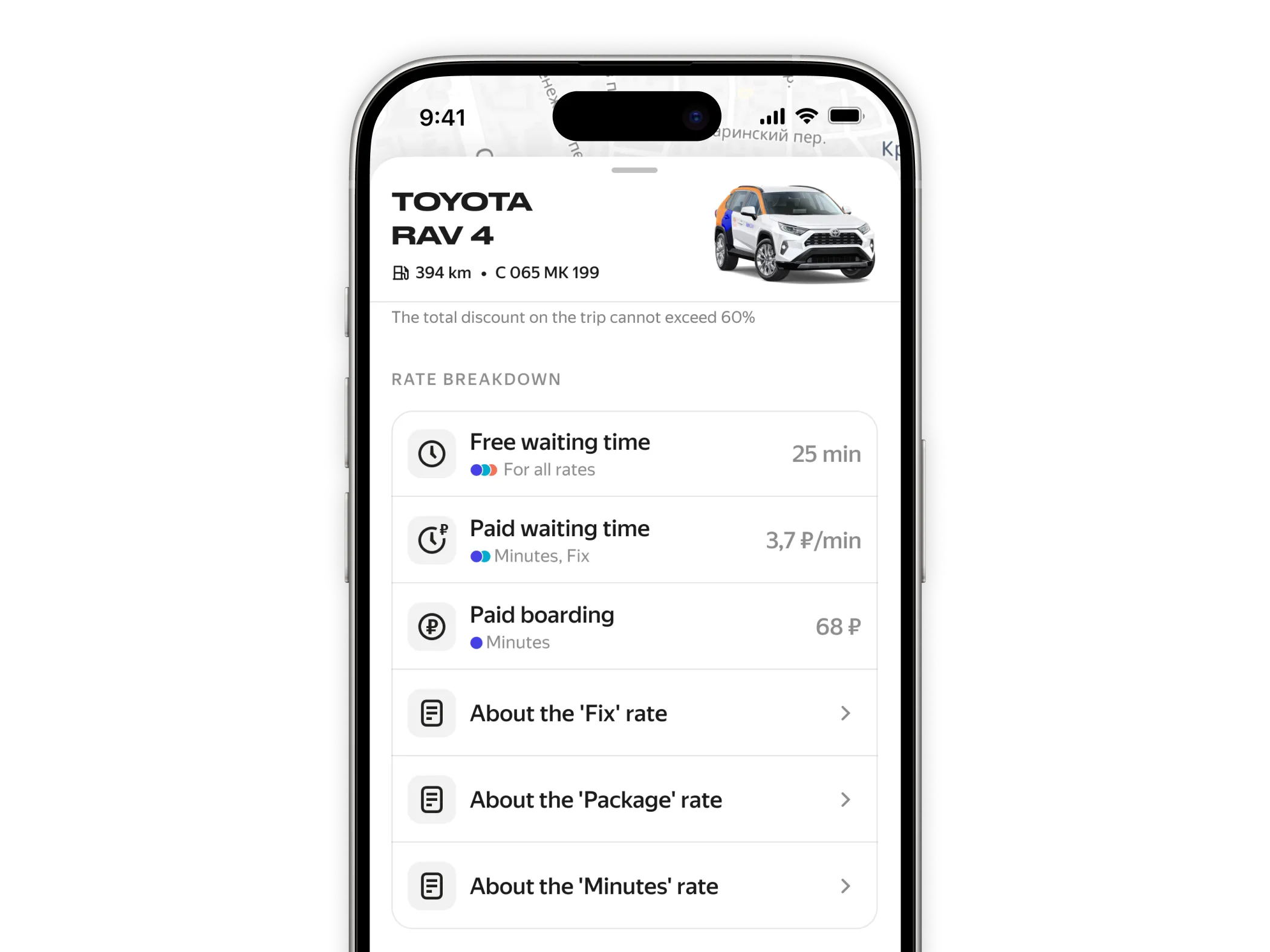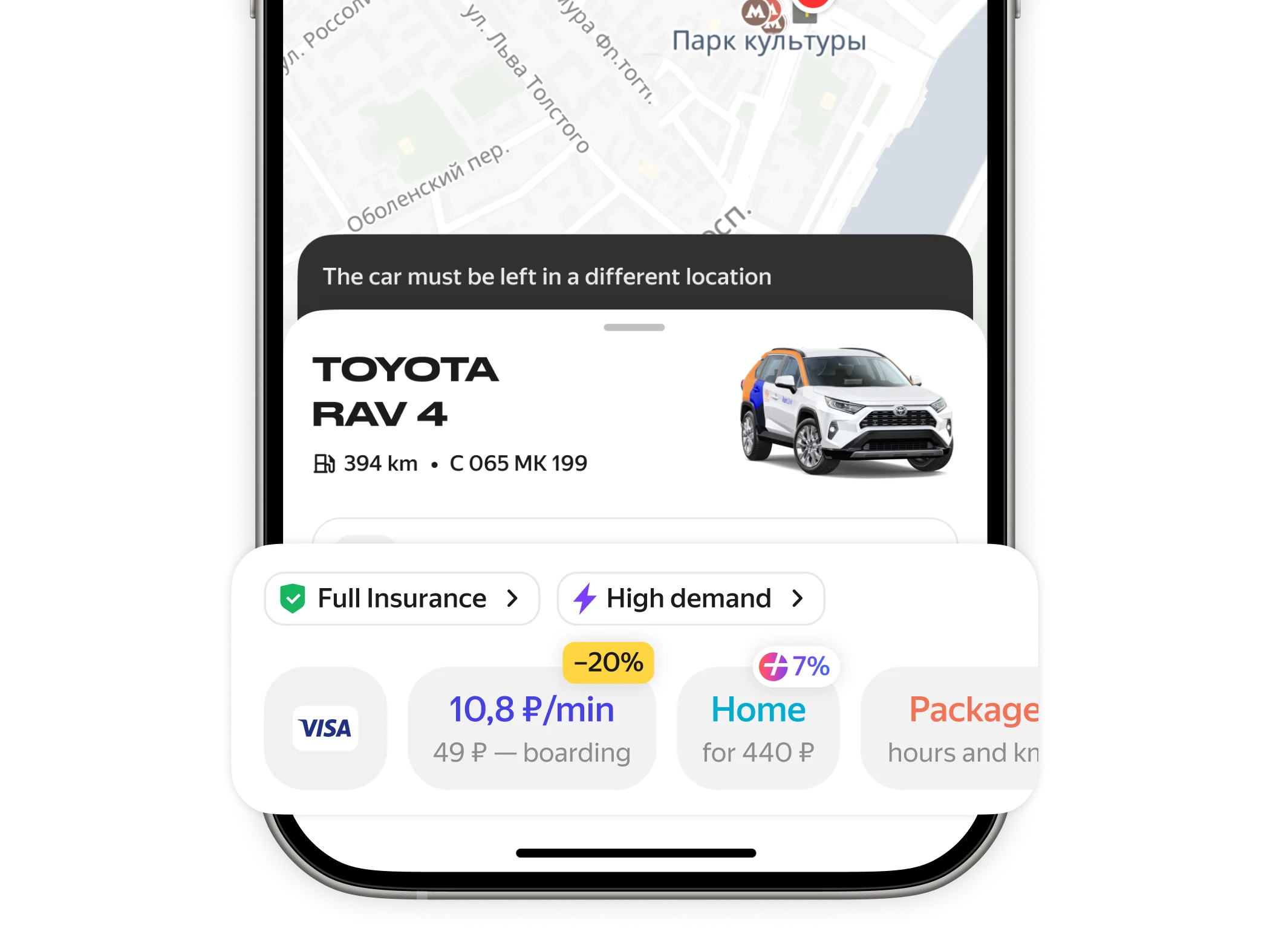 Yandex Drive is one of the largest carsharing services in Russia and Europe. The vehicle card is where users check car details, choose a rate, and book. Everything goes through this screen.